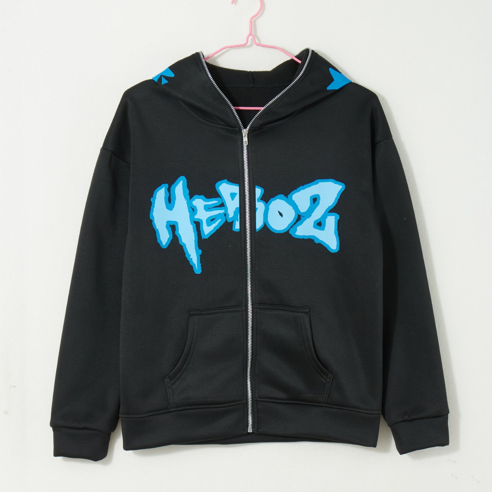 Women's Hooded Sweatshirt Jacket Cartoon Letter&Star Pattern Full Zip Up Fall Coat Streetwear